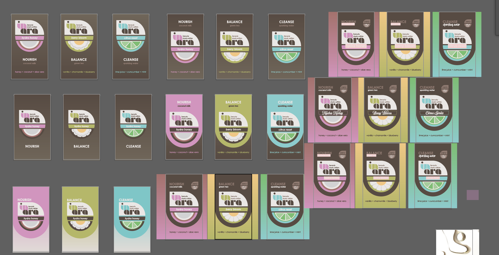 Inara is a conceptual skincare drink brand designed to blur the line between beauty and wellness. I developed the brand identity, packaging, and visual system with a focus on clean ingredients, hydration, and glow-from-within messaging. The design balances softness and clarity, using a refined color palette and minimal typography to create a modern, elevated feel. This project allowed me to explore branding at a systems level, ensuring the product feels cohesive across packaging, messaging, and digital touchpoints.