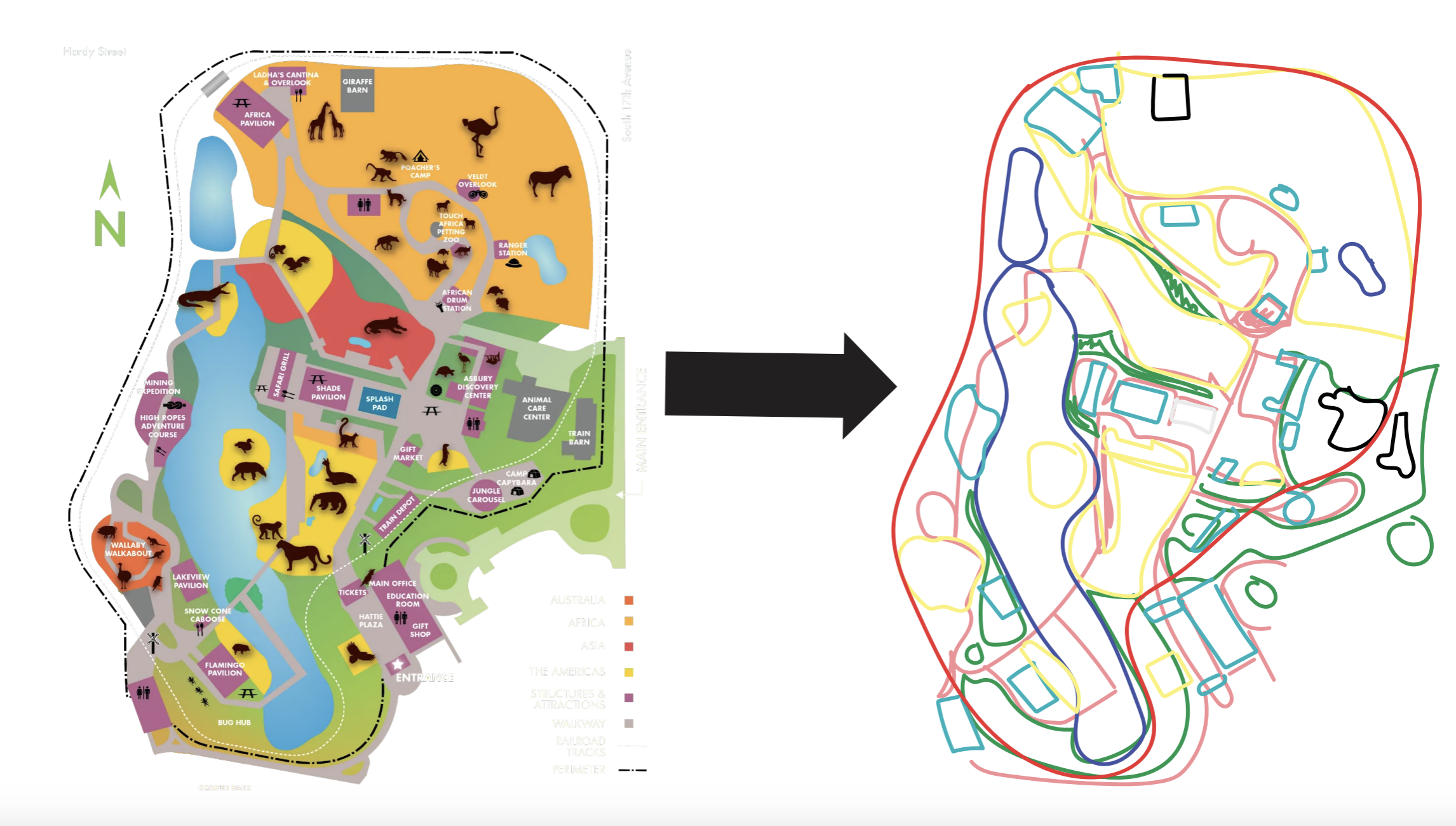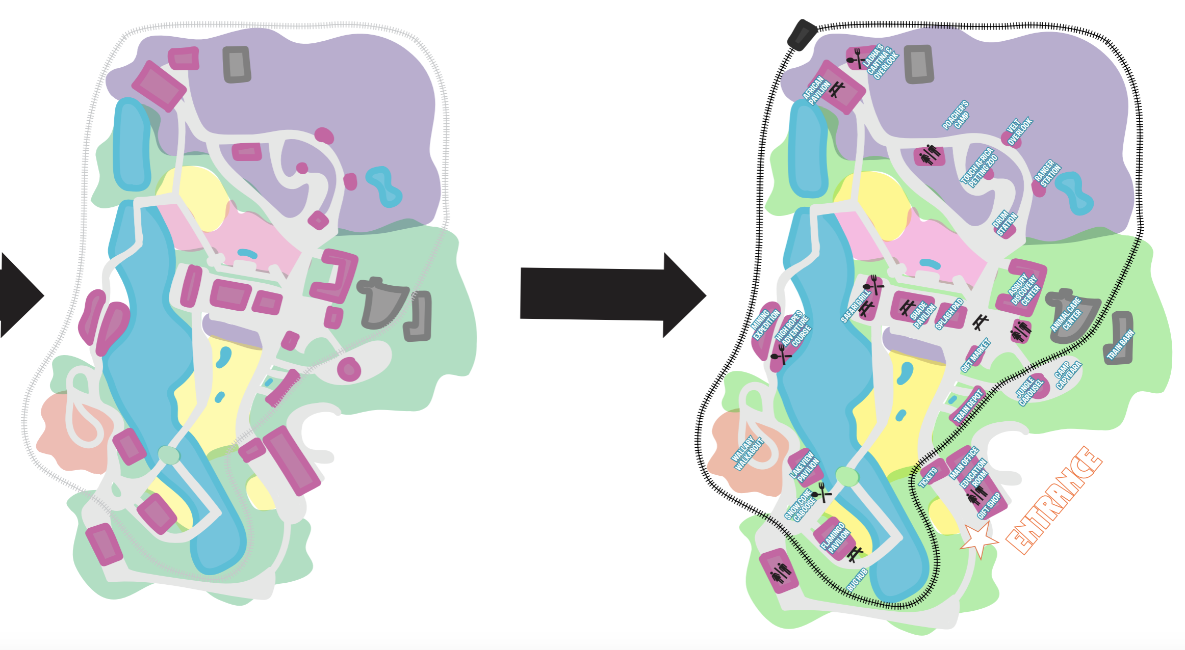 The brochure features illustrated animals found around the park, fun facts for kids, a colorful and simple-to-follow map, and important information like hours and special events. I focused on creating an experience that feels adventurous and engaging for children, while still being organized and functional for parents.